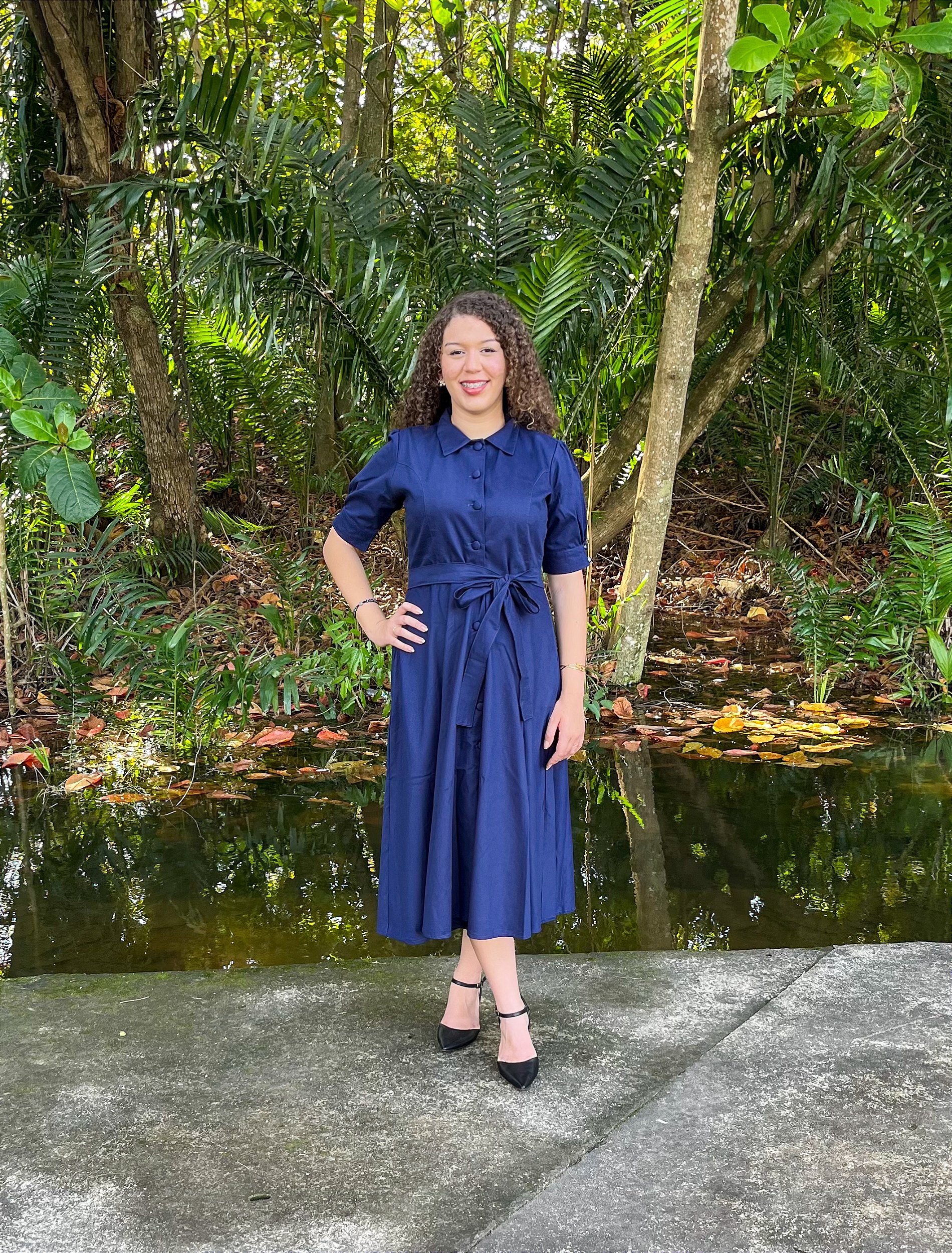 Com uma modelagem Chemise, esse vestido ficou um espetáculo, traz leveza e elegância com estilo. Confeccionado em tecido 98% algodão e 2% elastano, não possui forro (o tecido é mais encorpado). Possui botões funcionais forrados no mesmo tecido, bolsos laterais e comprimento super midi.